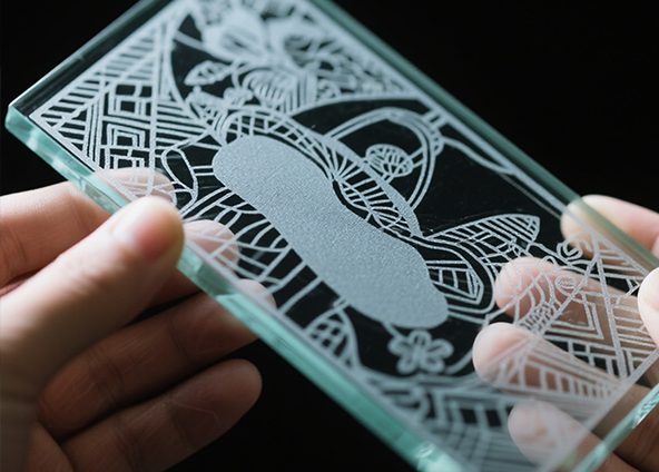 CO₂ lazeris gerai sugeria stiklo paviršių ir dažniausiai naudojamas paviršiaus graviravimui. CO₂ lazerio graviravimo efektas atrodo kaip matinis baltas raštas, todėl jis tinka reklamai, meniniam dekoravimui ir dovanų užrašams. Kita vertus, ultravioletiniai (UV) lazeriai pasižymi trumpesniu bangos ilgiu ir veikia „šalto apdorojimo“ režimu su minimalia šilumos paveikta zona. UV lazeriai gali sukurti smulkias linijas, QR kodus ir logotipus.