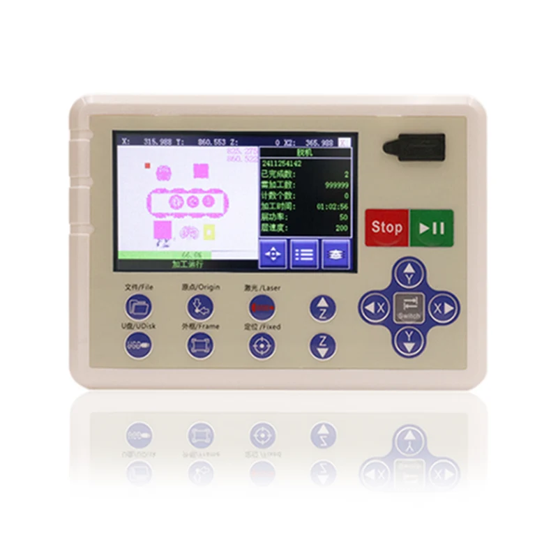 Sistemoje yra 4,3 colio jutiklinis ekranas, palaiko kelis failų formatus ir įgalina didelio tikslumo grafinį atpažinimą ir pjovimą. Tai palaiko tuo pačiu metu atpažinti kelis šablonus, leidžiančius apdoroti kelių grafikų apdorojimą, kad padidintų gamybos efektyvumą. Intelektualios šėrimo funkcija gali automatiškai ištaisyti nuokrypius, kad būtų užtikrinta pjovimo kokybė sujungimo taškuose. Tuo tarpu sistema taip pat palaiko Z ašies šėrimą ir išjungimo atnaujinimo pjovimo funkcijas, kad būtų užtikrintas stabilumas ir tęstinumas pjovimo proceso metu.